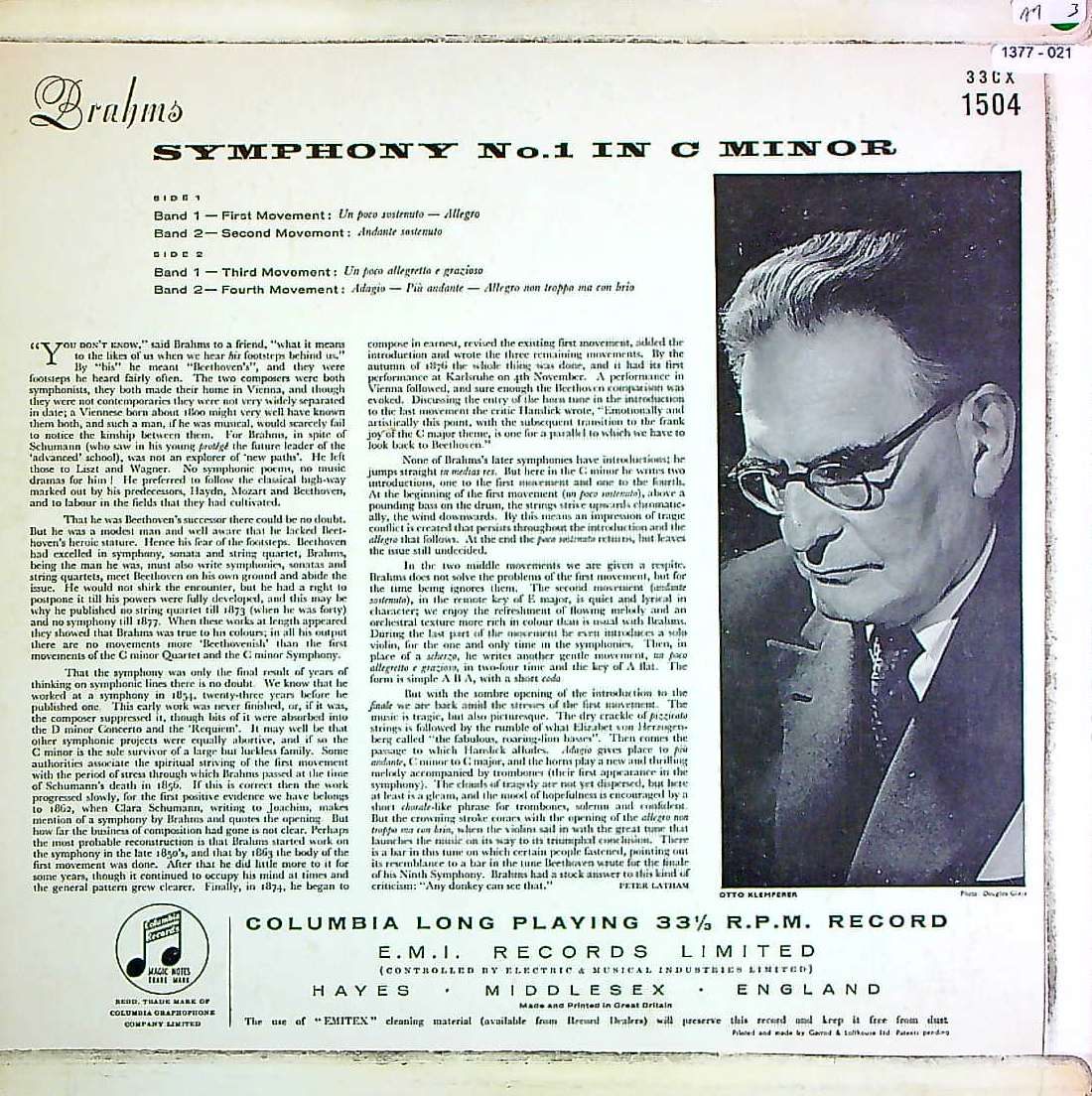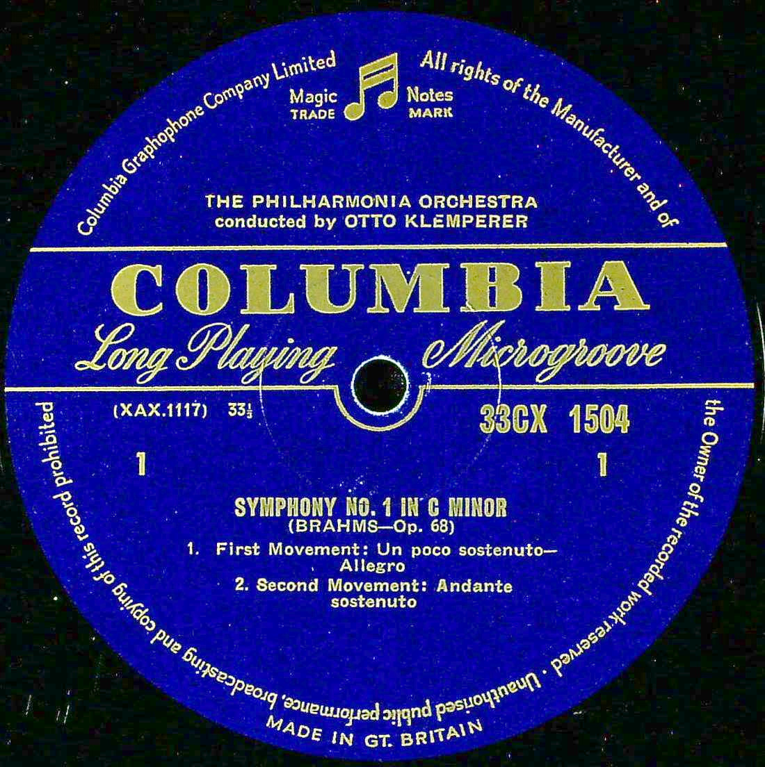 商品コード:1377-021[COLUMBIA] O.クレンペラー/ ブラームス:交響曲1番Op.68
