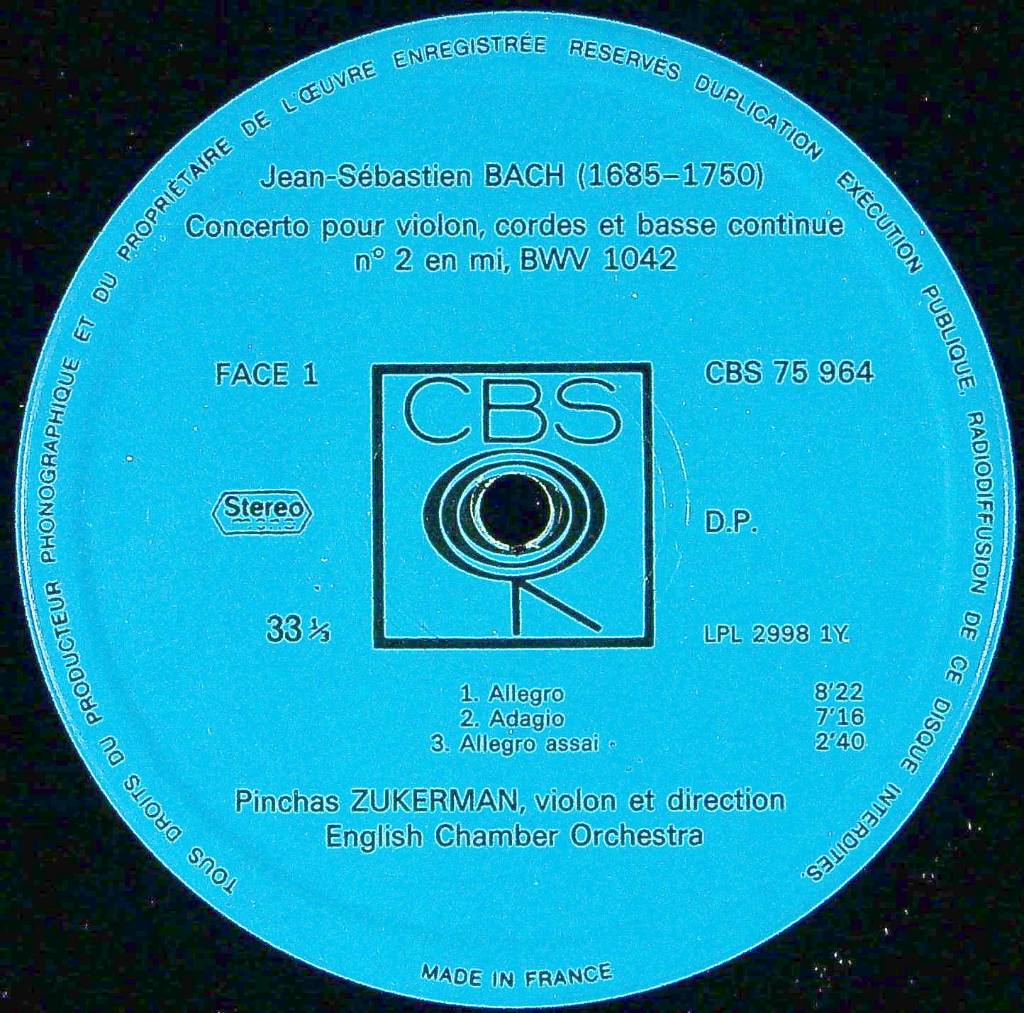 商品コード:1377-009[CBS] P.ズーカーマン(vn)/ バッハ:Vn協奏曲1番B.1041&2番B.1042, ブランデンブルク協奏曲3番BWV.1048