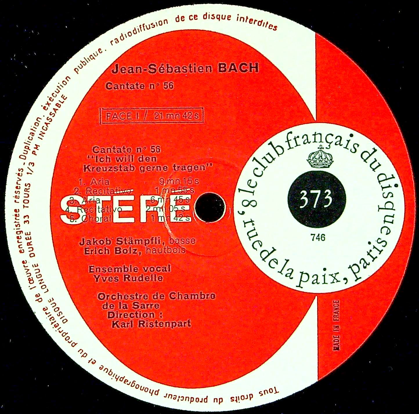 商品コード:1377-004pb[Club Français] K.リステンパルト/ バッハ:カンタータ56番BWV.56, 169番BWV.169