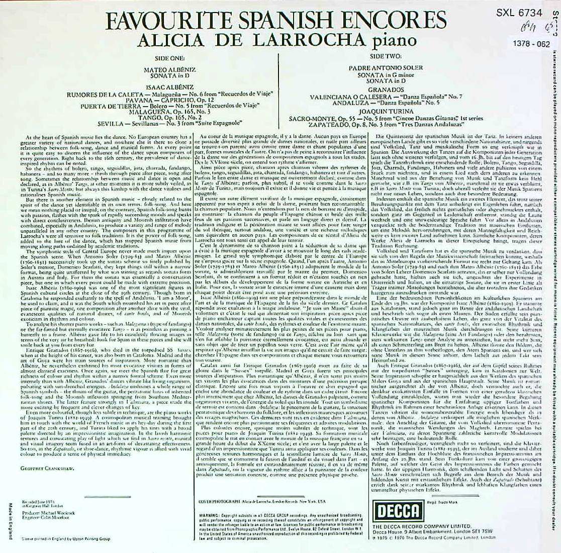 商品コード:1378-062[DECCA] A.d.ラローチャ(pf) / 「スパニッシュ・アンコール/アルベニス, ソレール, グラナドス, トゥリーナ