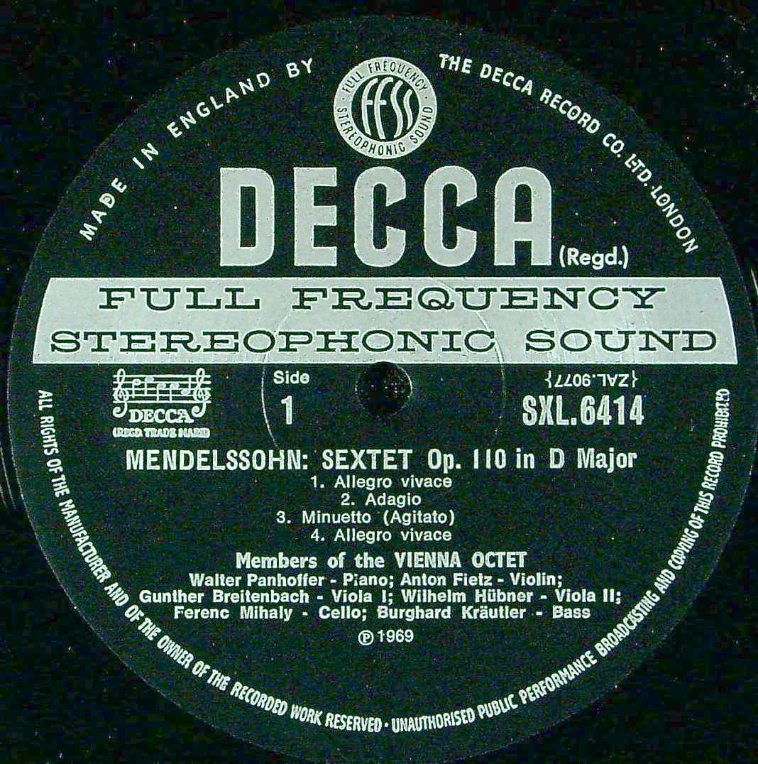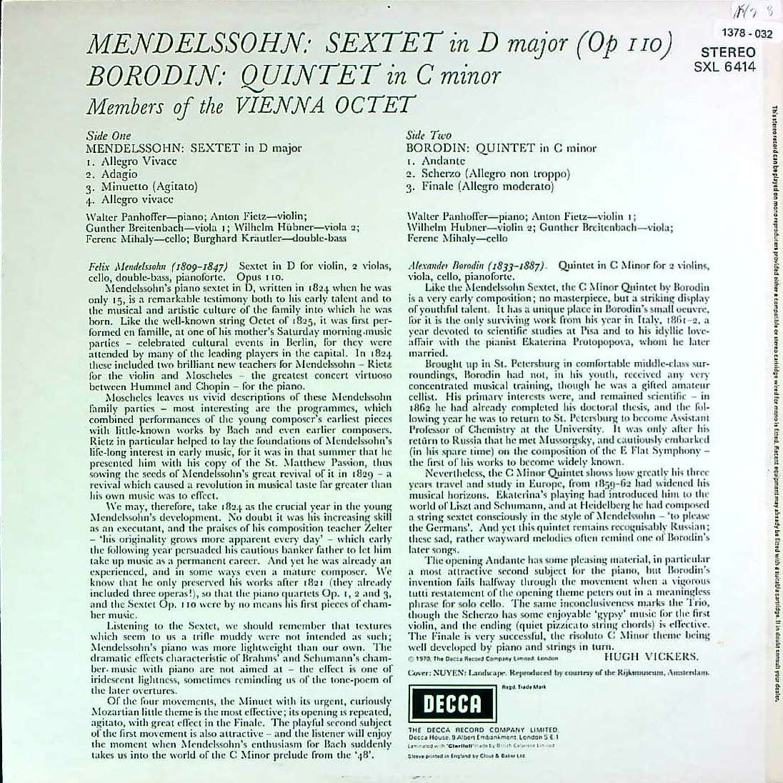 商品コード:1378-032[DECCA] W.パンフォーファー(pf) ウィーン八重奏団メンバー/ メンデルスゾーン:六重奏曲, ボロディン:Pf五重奏曲 ハ長調