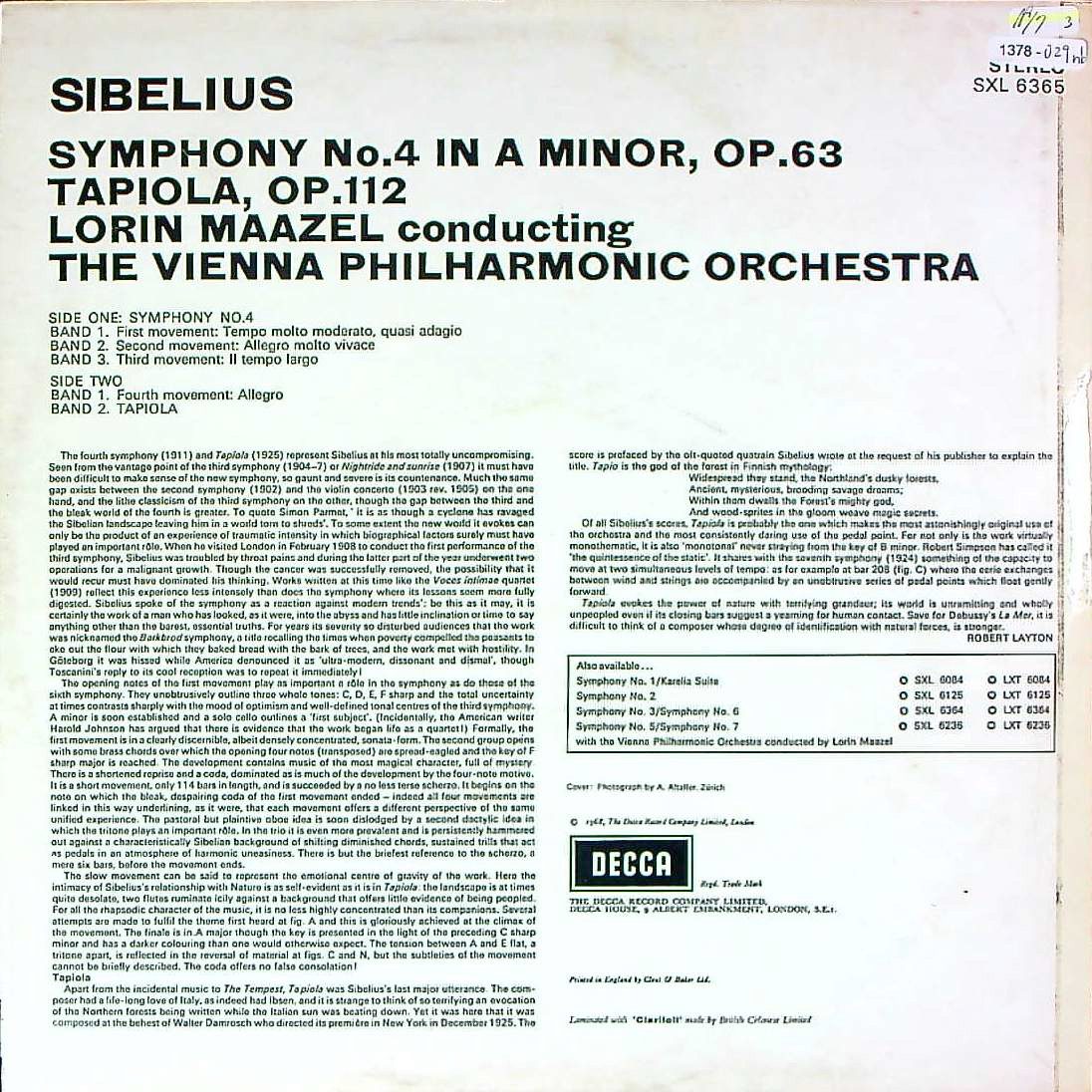 商品コード:1378-029nb[DECCA] L.マゼール/ シベリウス:交響曲4番Op.63, 交響詩「タピオラ」Op.112