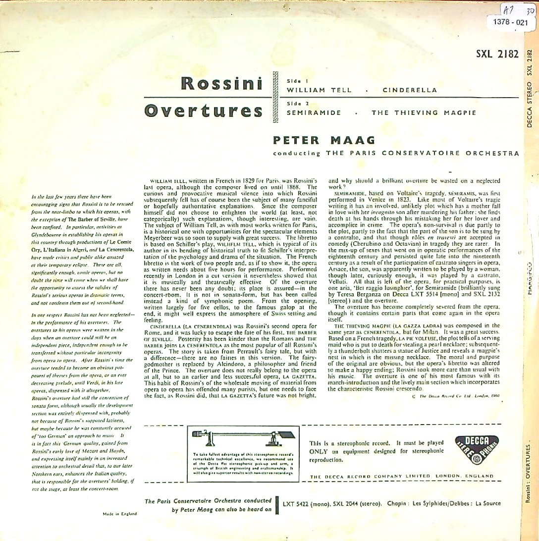 商品コード:1378-021[DECCA] P.マーク/ ロッシーニ:序曲集/ウィリアム・テル, シンデレラ, セミラーミデ, 泥棒かささぎ