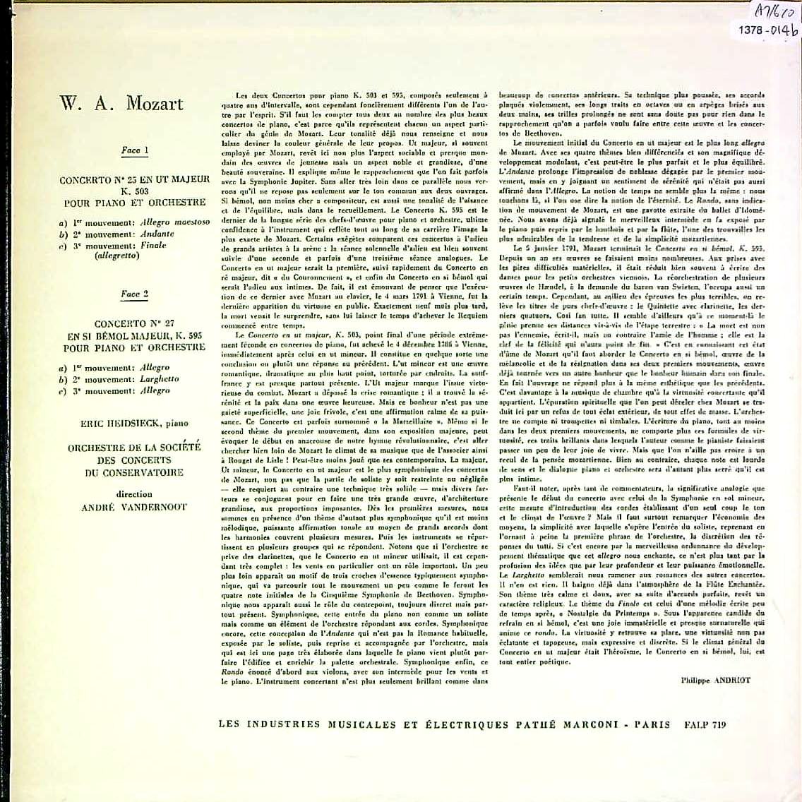 商品コード:1378-014b[VSM] E.ハイドシェック(pf)/ モーツァルト:Pf協奏曲25番K.503, 27番K.595