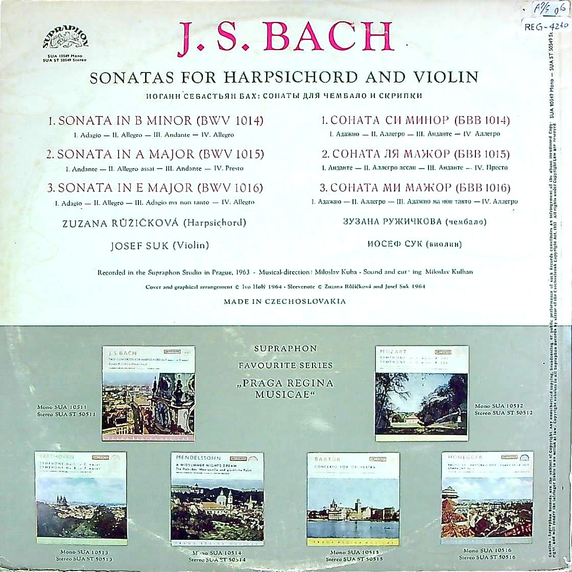 商品コード:REG-4260[SUPRAPHON] J.スーク(vn)/ バッハ:Vnソナタ1番B.1014, 2番B.1015, 3番1016