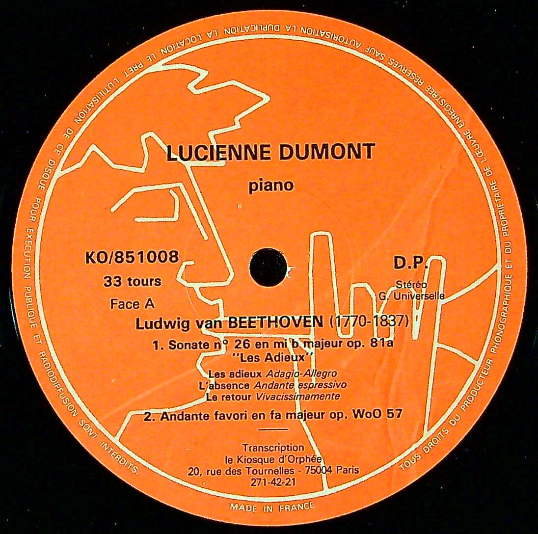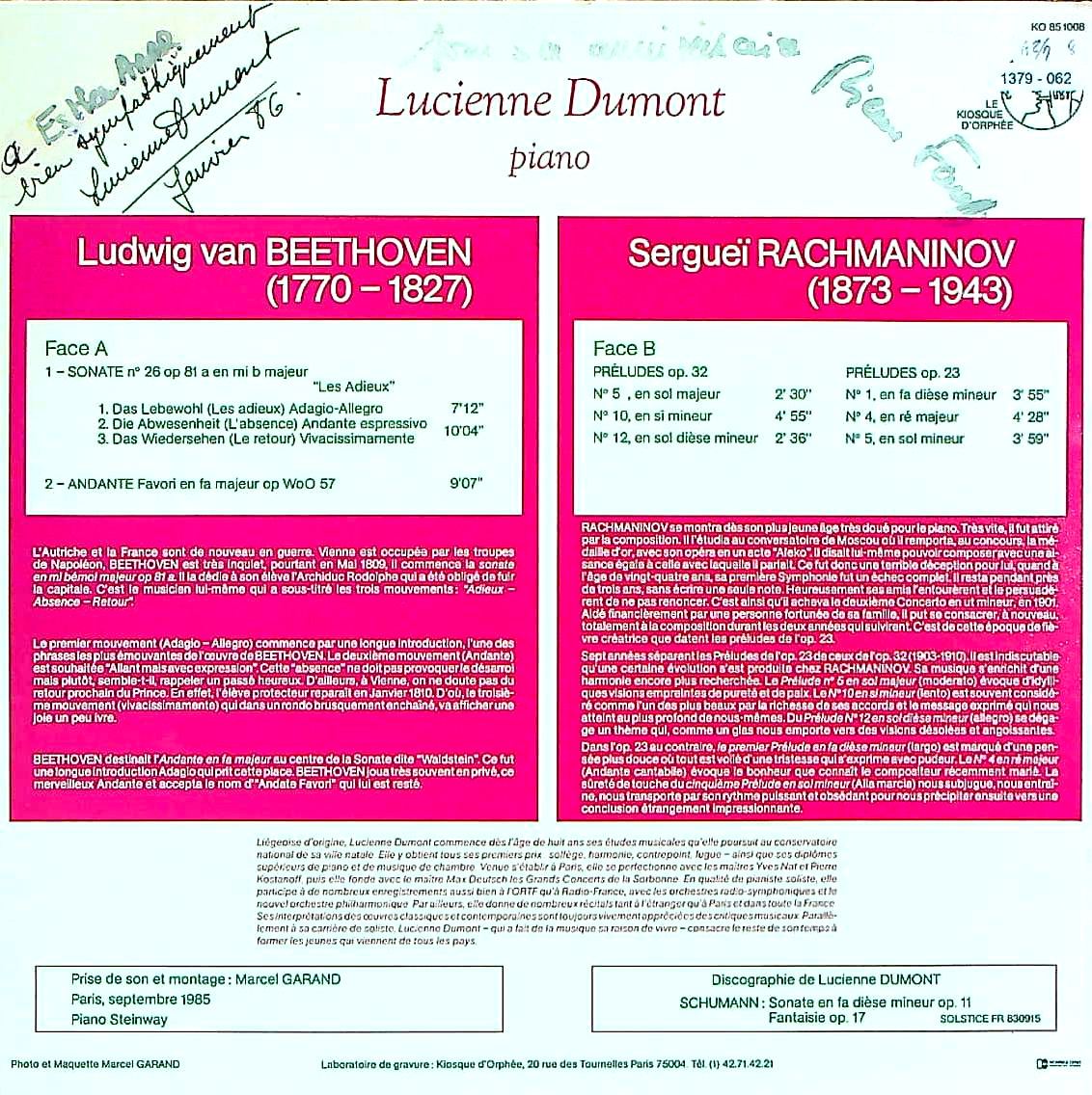 商品コード:1379-062[Le Kiosque d'Orphée] L.デュモン(pf) / ベートーヴェン:Pfソナタ26番Op.81「告別」, ラフマニノフ:前奏曲集Op.32(抜粋3曲), Op.23(抜粋3曲)