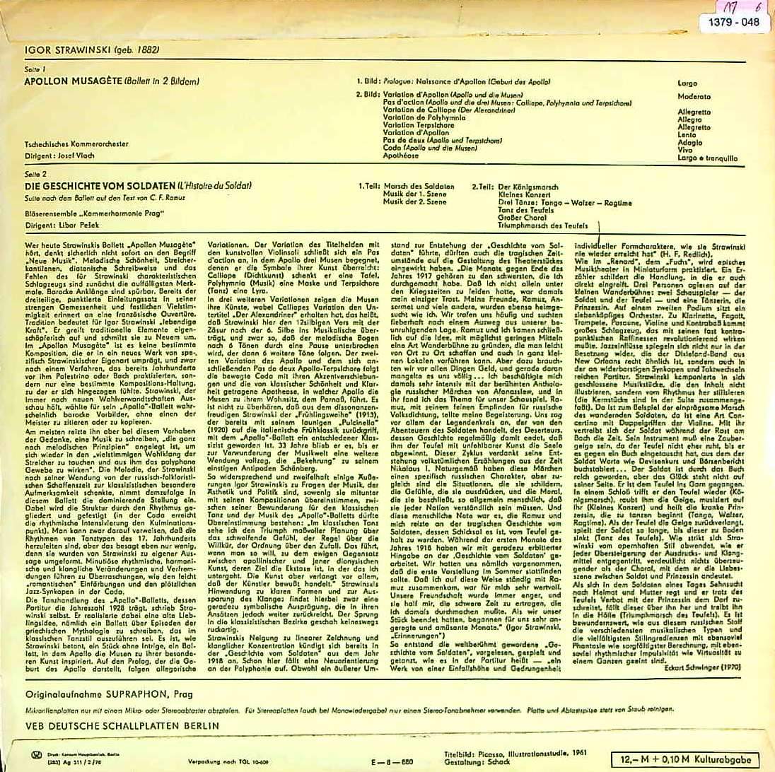 商品コード:1379-048t[ETERNA] J.ヴラフ, L.ペシェク/ ストラヴィンスキー:ミューズをつかさどるアポロ, 兵士の物語