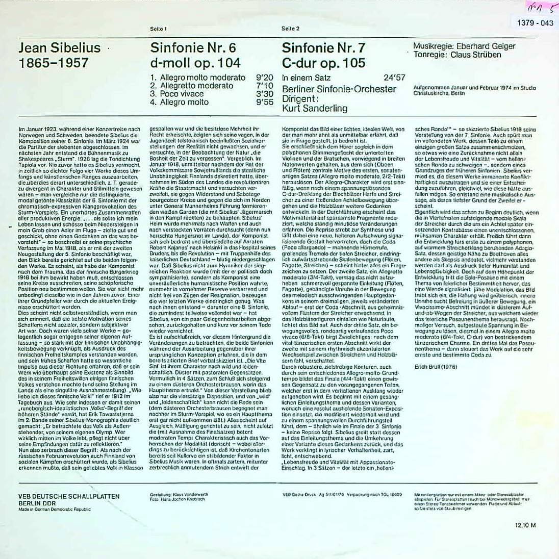商品コード:1379-043t[ETERNA] K.ザンデルリング/ シベリウス:交響曲6番, 交響曲7番