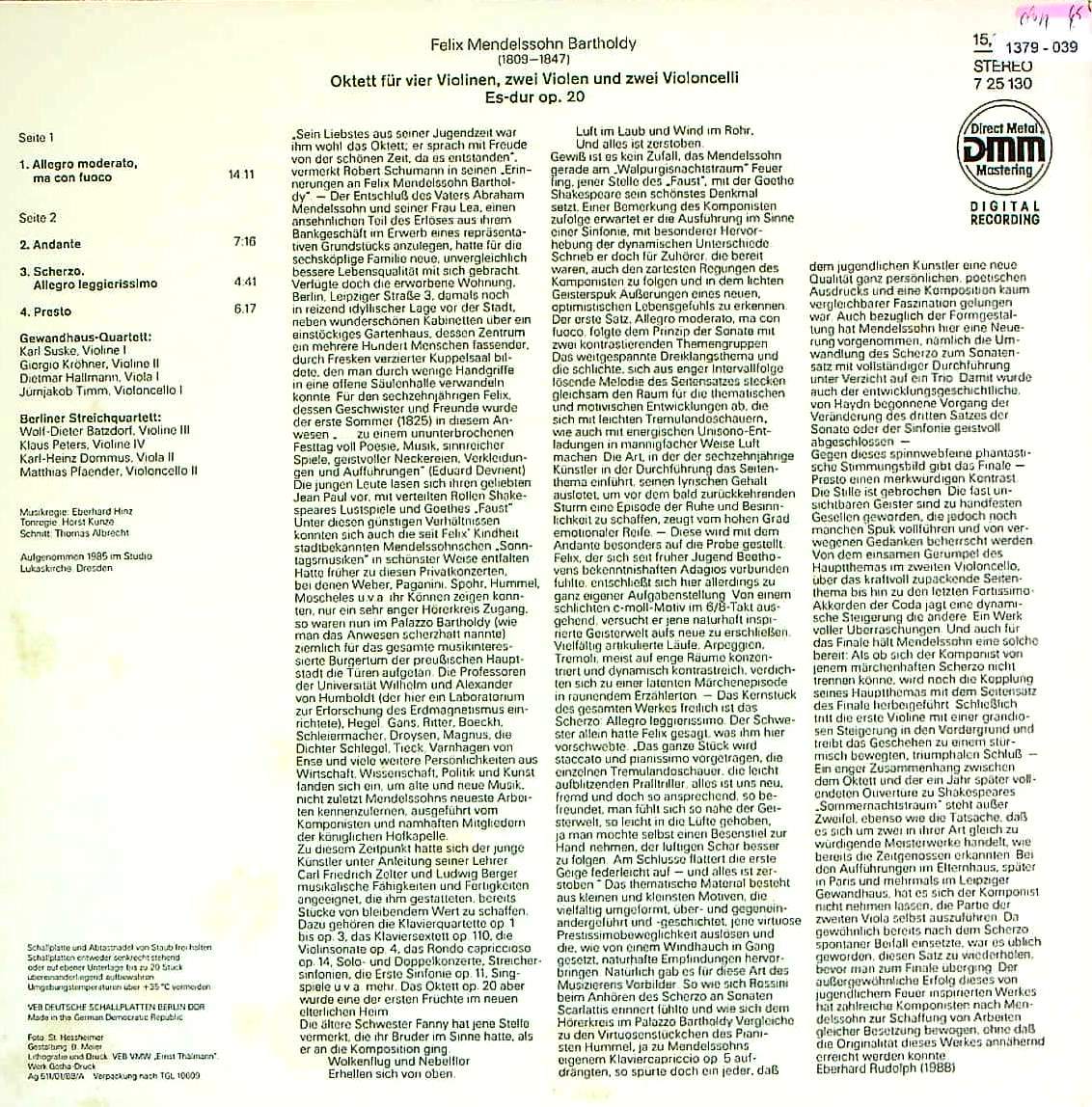 商品コード:1379-039t[ETERNA] ゲヴァントハウスQt. ベルリンQt./ メンデルスゾーン:弦楽八重奏曲Op.20