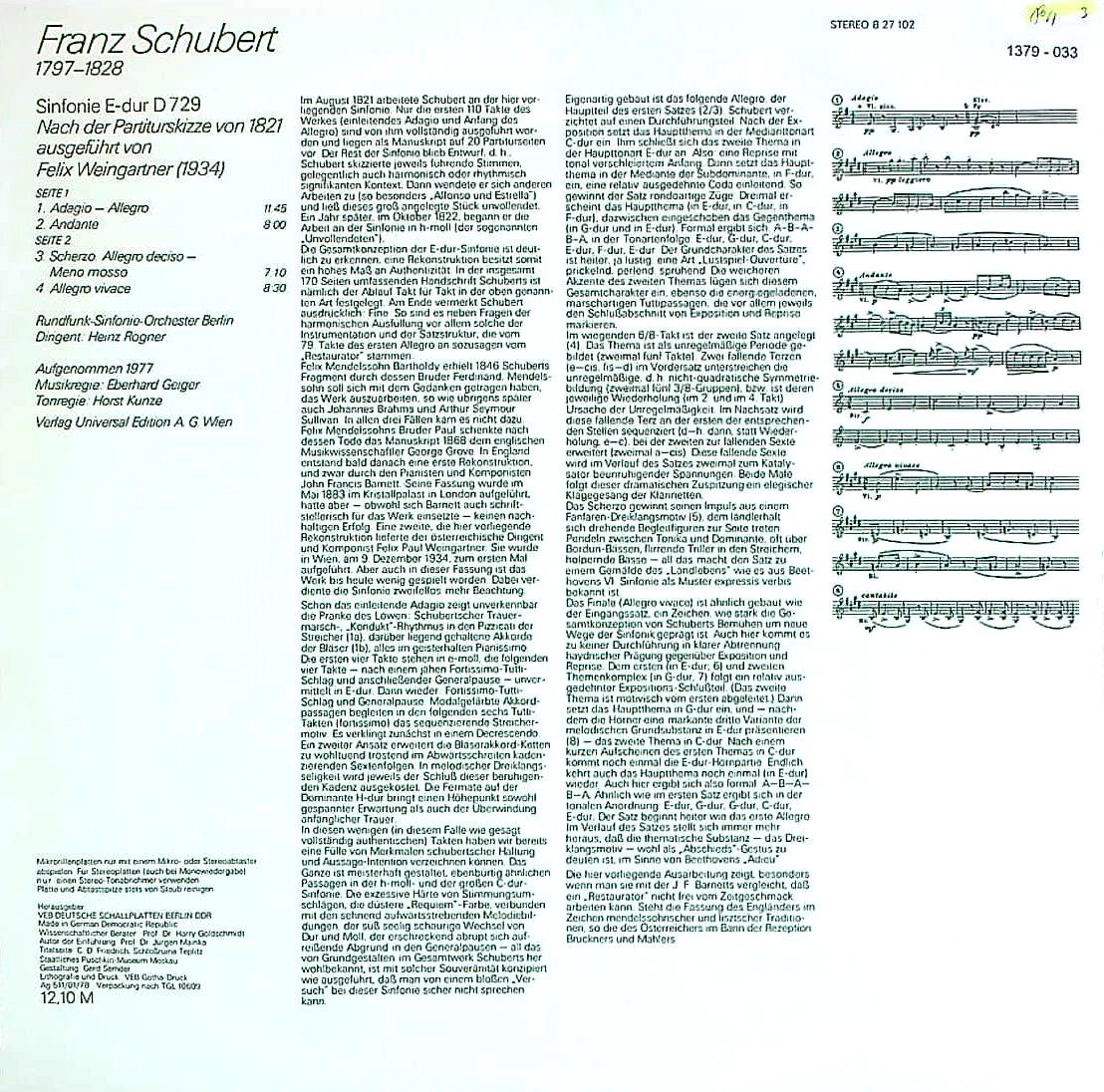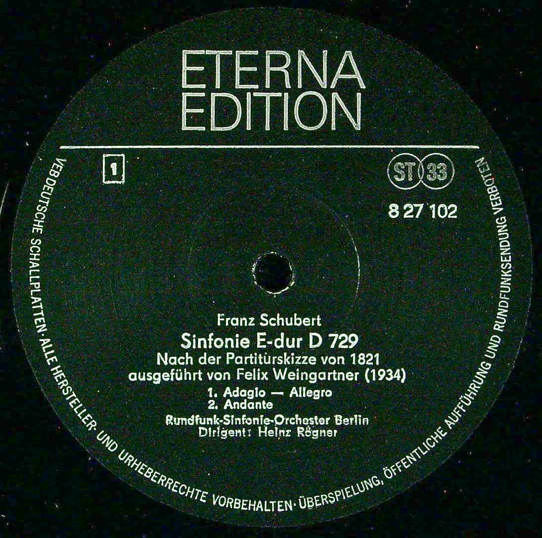 商品コード:1379-033n[ETERNA] H.レーグナー/ シューベルト:交響曲ホ長調D.729(ワインガルトナー版)