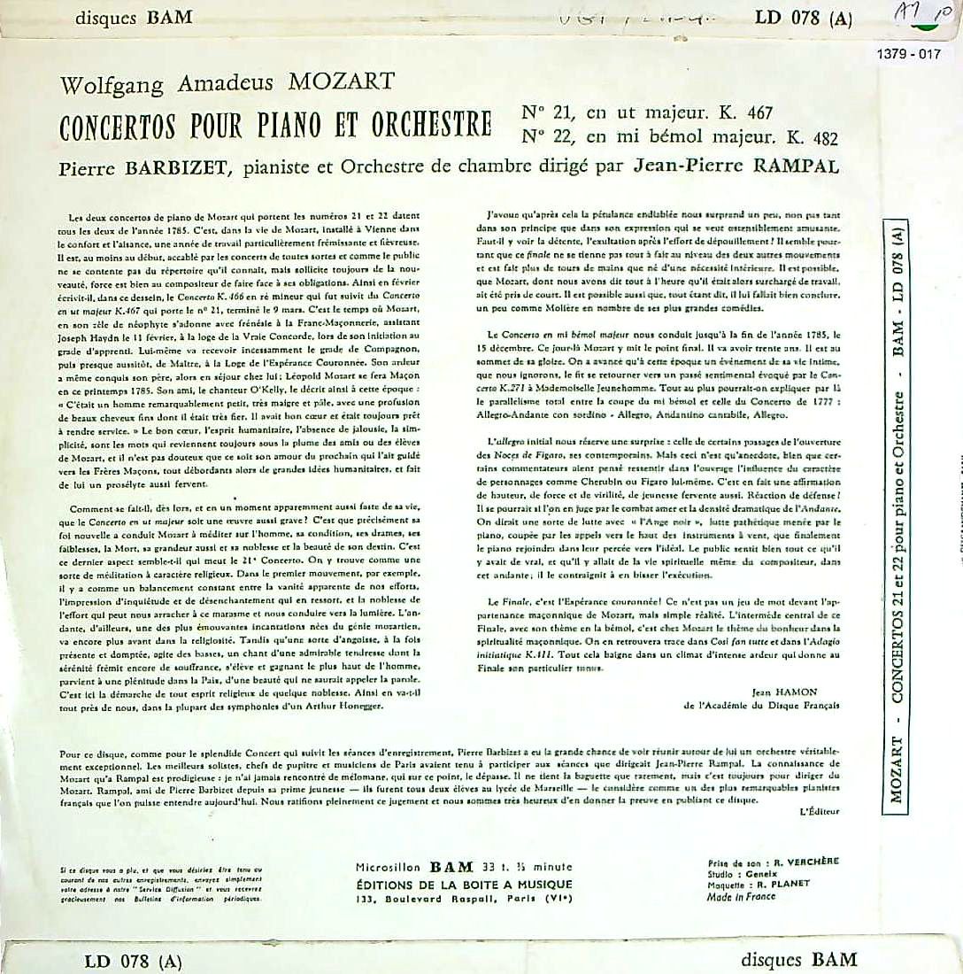 商品コード:1379-017[BAM] P.バルビゼ(pf)/ モーツァルト:Pf協奏曲21番K.467, 22番K.482