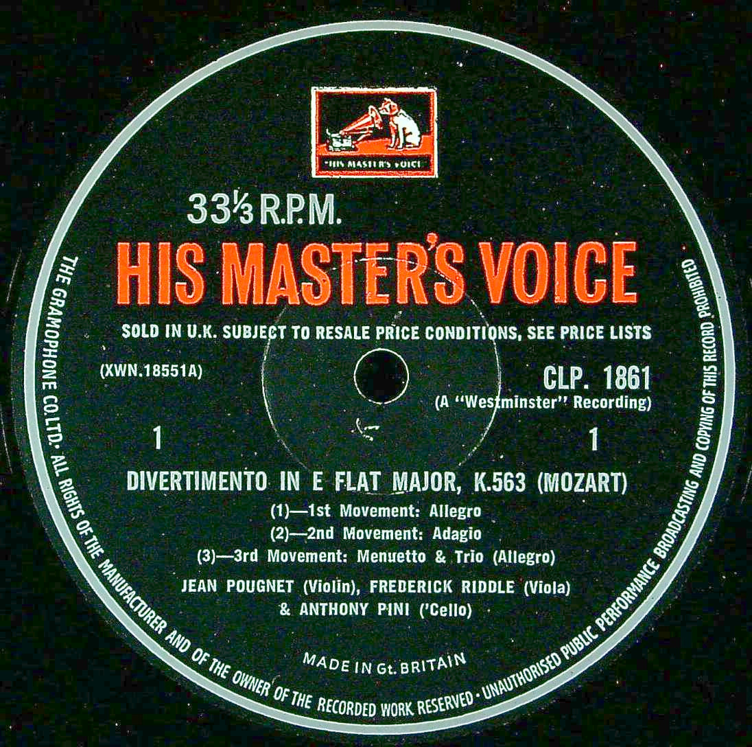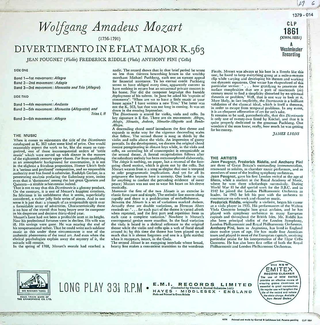商品コード:1379-014[HMV] J.プーニェ(vn) F.リドル(va) A.ピーニ(vc) / モーツァルト:ディヴェルティメントK.563