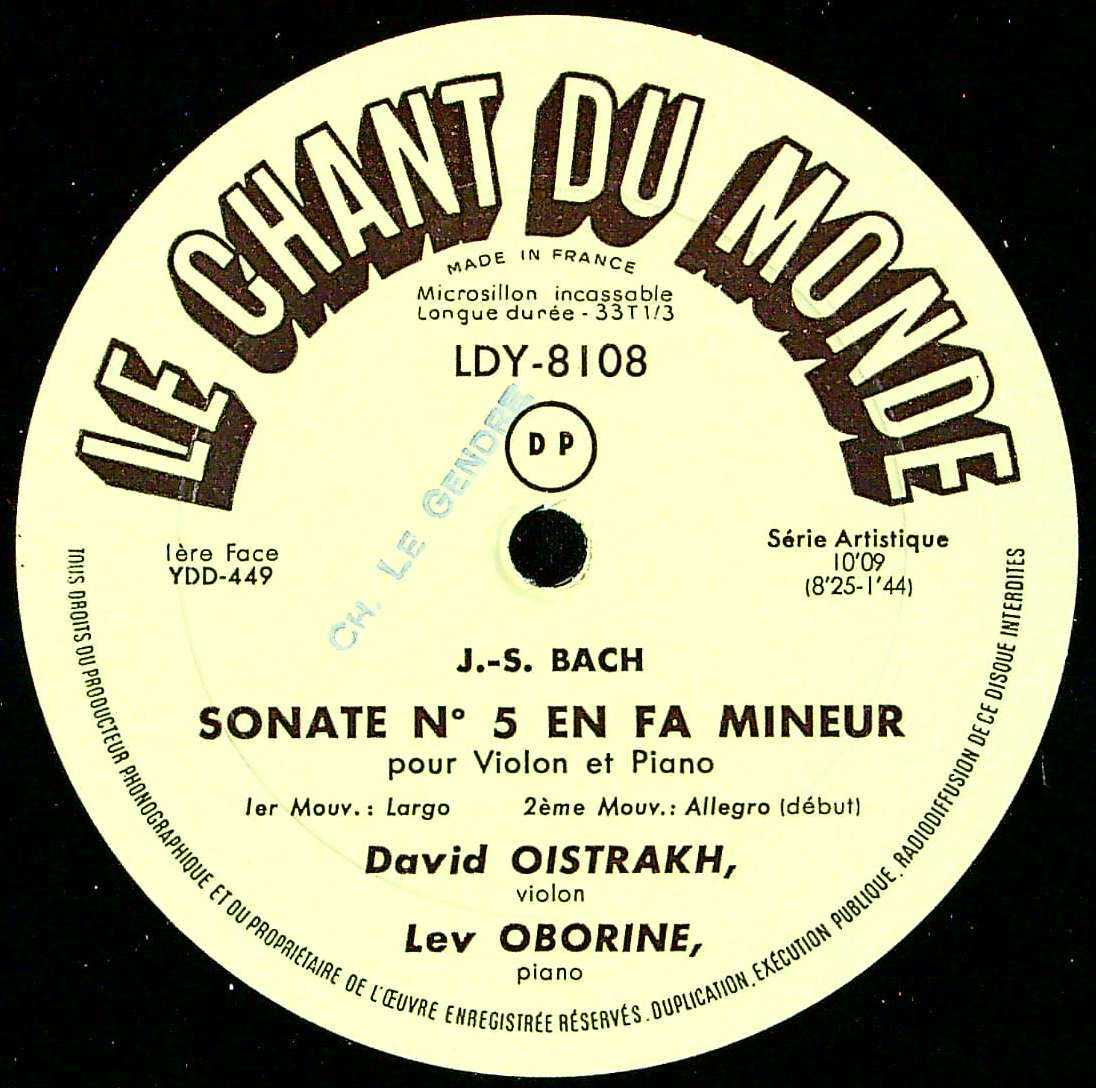 商品コード:1379-006[Chant du Monde] D.オイストラフ(vn)/ バッハ:Vnソナタ第5番BWV.1018
