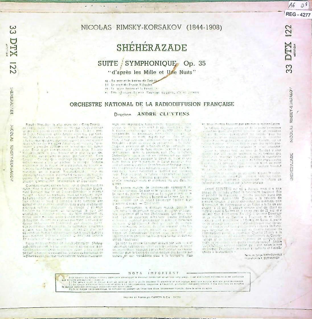 商品コード:REG-4277[仏Pathé] A.クリュイタンス/ リムスキー・コルサコフ:交響組曲「シェヘラザード」