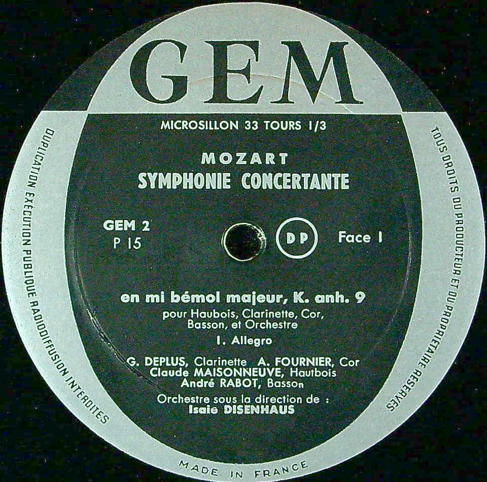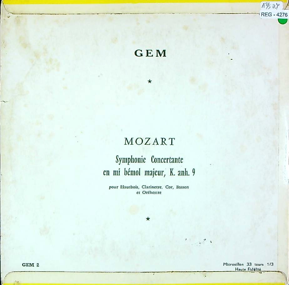 商品コード:REG-4276[仏GEM] I.ディセナウス 他 / モーツァルト:管弦楽のための協奏交響曲K.297b(K.Anh.C14.01)