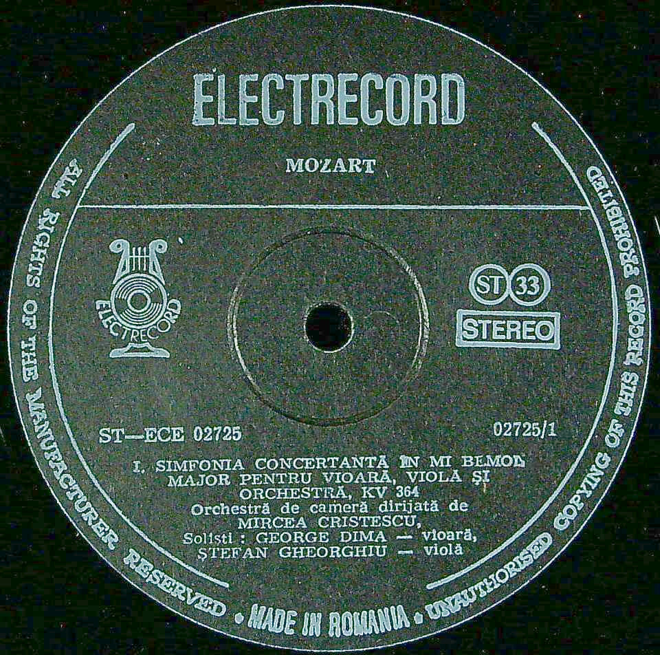 商品コード:REG-4274n[Electrecord] G.ディマ(vn) S.ゲオルギウ(va) M.クリテスク指揮/ モーツァルト:協奏交響曲K.364, 音楽の冗談K.522