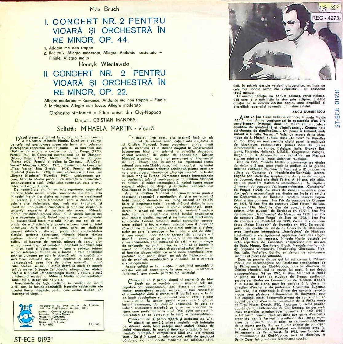 商品コード:REG-4273n[Electrecord] M.マルティン(vn)/ ブルッフ:Vn協奏曲2番Op.44, ヴィエニャフスキ:Vn協奏曲2番Op.22