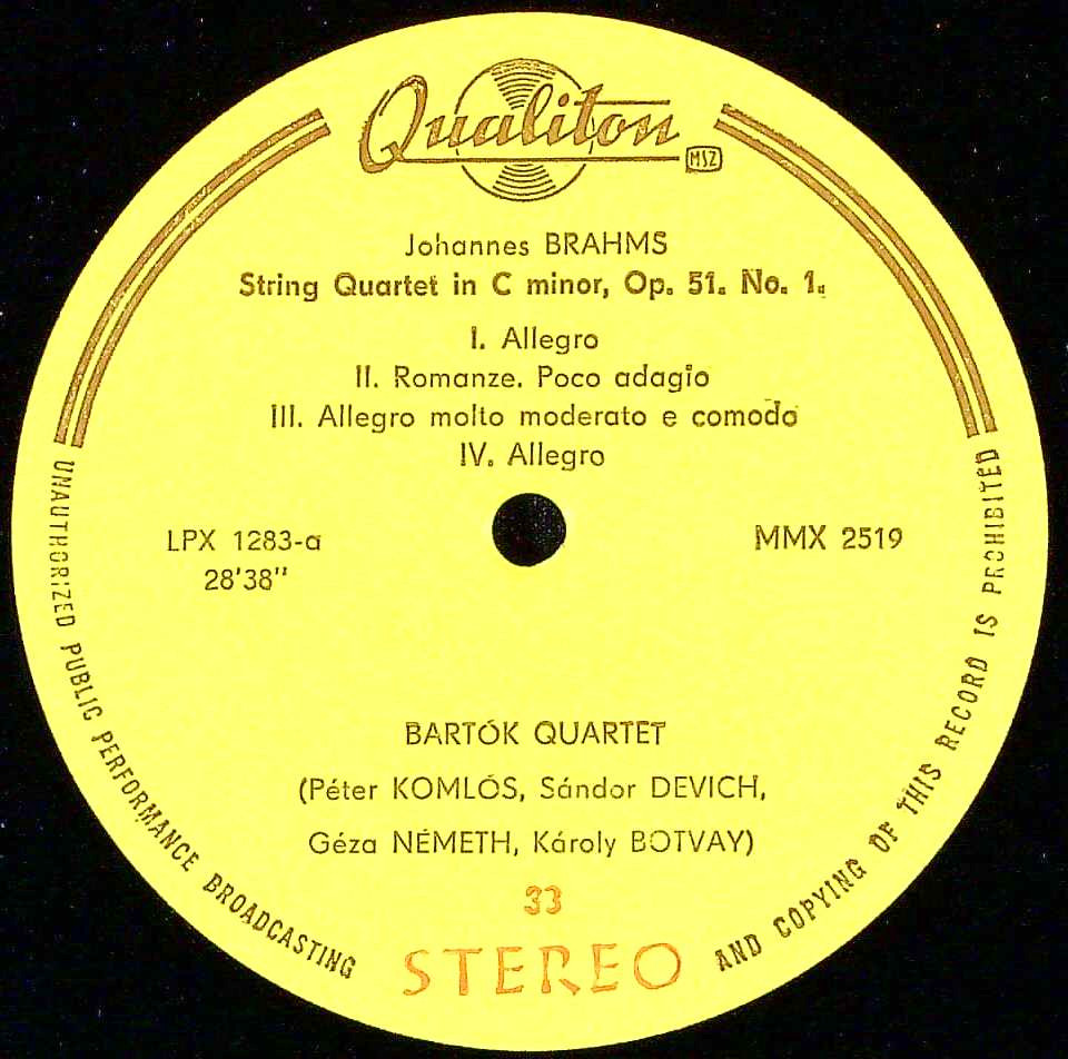 商品コード:REG-4272n[洪QUALITON] バルトークQt. / ブラームス:SQ1-2番Op.51