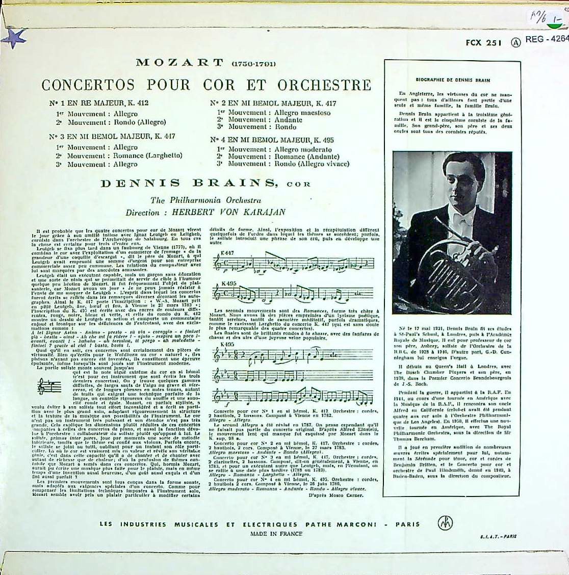 商品コード:REG-4264[仏COLUMBIA] D.ブレイン(hr)/ モーツァルト:Hr協奏曲1番K.412, 2番K.417, 3番K.447, 4番K.495
