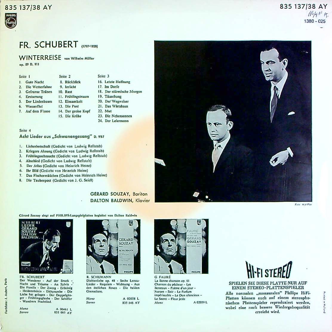 商品コード:1380-025[PHILIPS] G.スゼー(br)/ シューベルト:「冬の旅」Op.89, 「白鳥の歌」~8曲