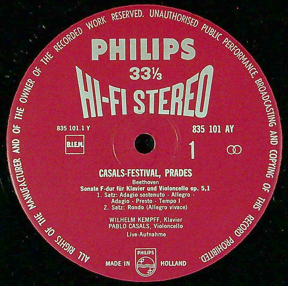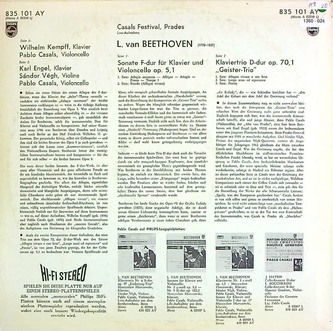商品コード:1380-024[PHILIPS] カザルス ケンプ/エンゲル ヴェーグ/ ベートーヴェン:Vcソナタ1番, Pf三重奏曲5番Op.70-1「幽霊」