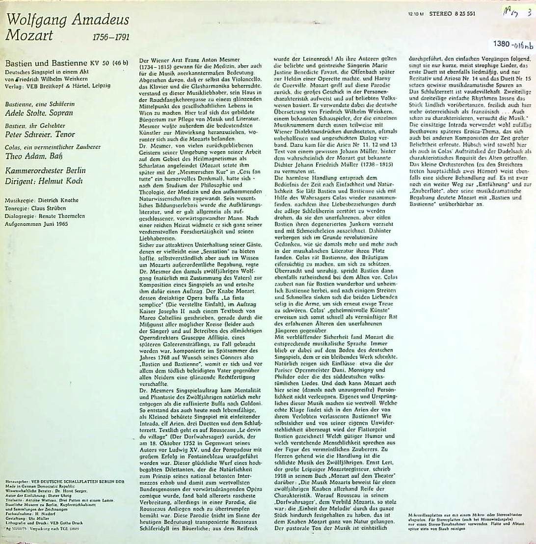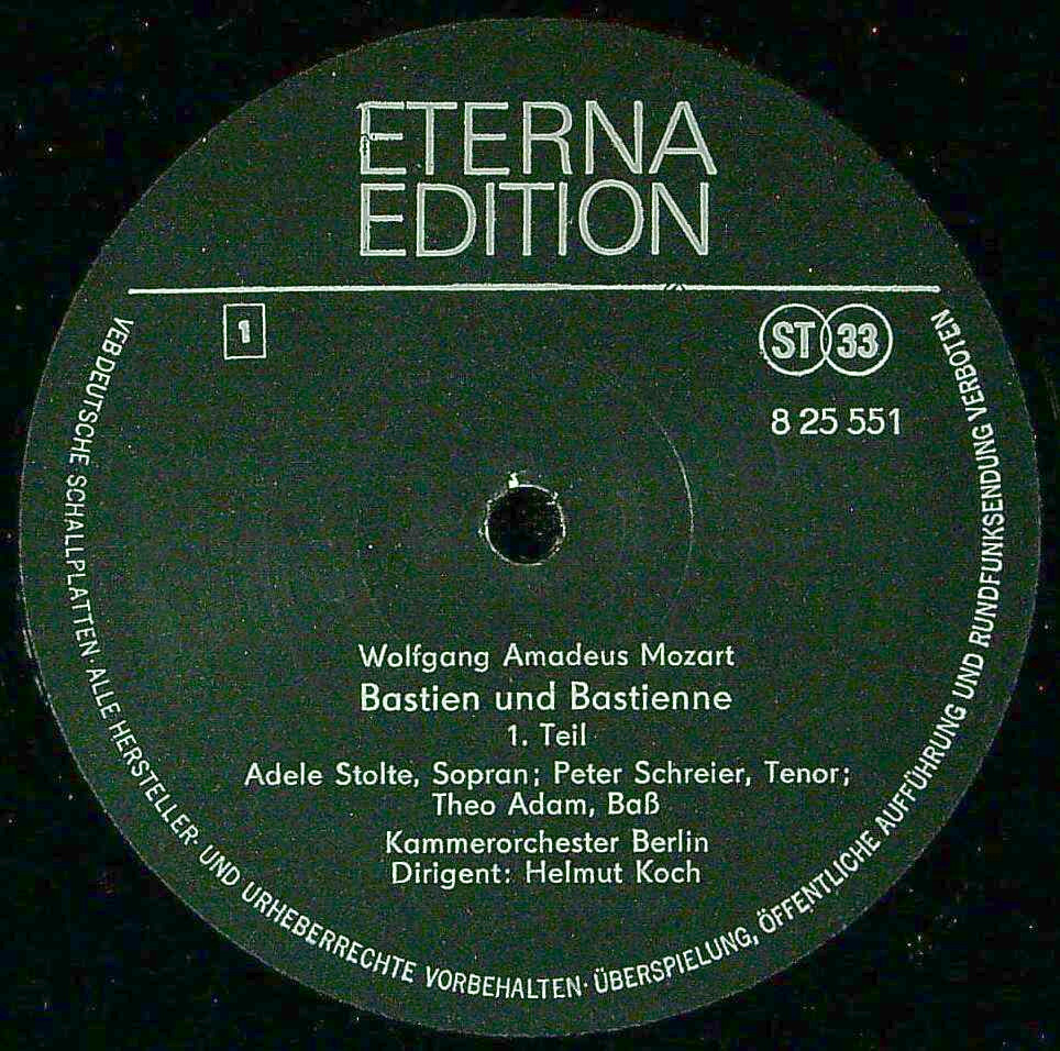 商品コード:1380-016nb[ETERNA] H.コッホ指揮 シュトルテ シュライアー アダム/ モーツァルト:ジングシュピール「バスティアンとバスティエンヌ」K.50 (ドイツ語)