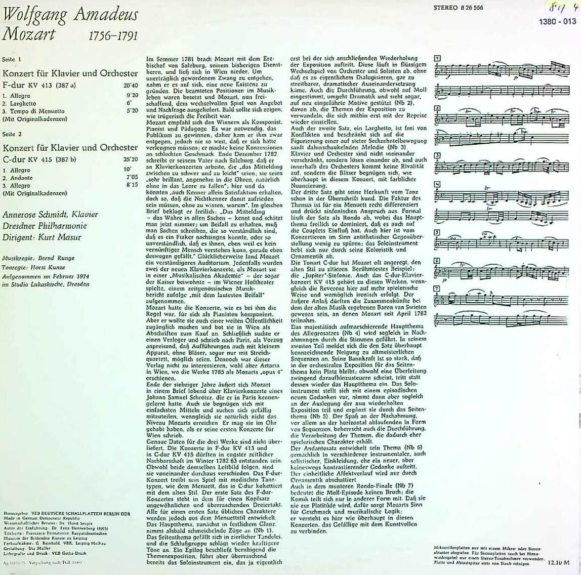 商品コード:1380-013n[ETERNA] A.シュミット(pf)/ モーツァルト:Pf協奏曲11番K.413, 13番K.415