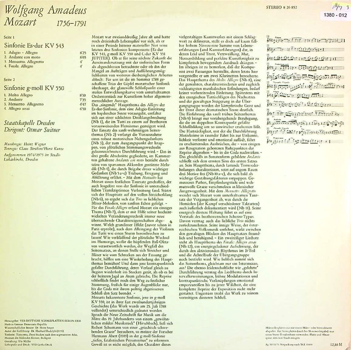 商品コード:1380-012n[ETERNA] O.スウィトナー/ モーツァルト:交響曲39番K.543, 40番K.550