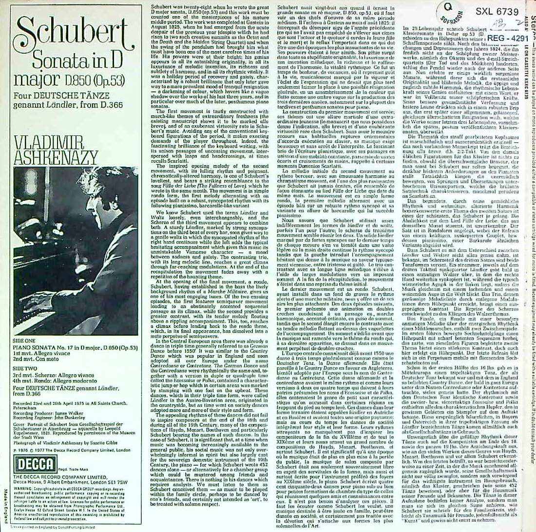 商品コード:REG-4291[英DECCA] V.アシュケナージ(pf) / シューベルト:Pfソナタ17番Op.53, ドイツ舞曲D.366~4曲