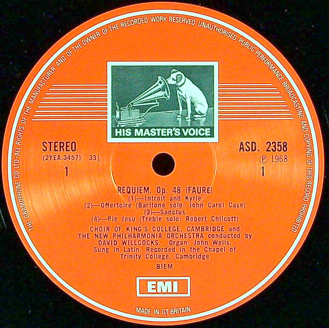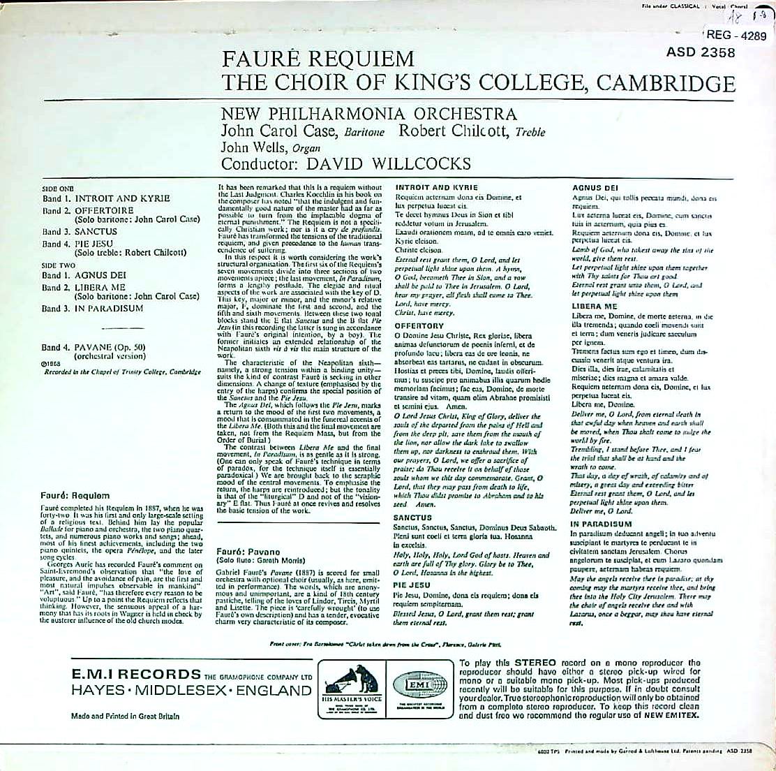 演奏者:D.ウィルコックス指揮ニューフィルハーモニアo. /ケンブリッジ・キングスカレッジcho.J.C.ケース(br)R.チルコット(bs)