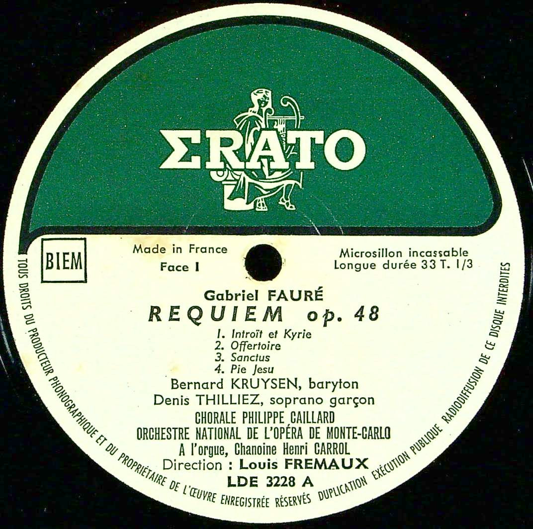 商品コード:REG-4282[仏ERATO] L.フレモー/ フォーレ:レクイエム, ラシーヌ讃歌