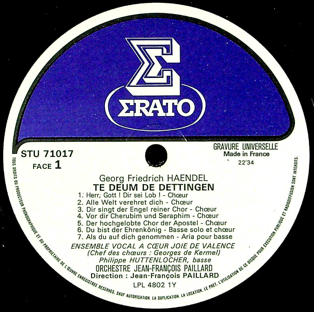 商品コード:REG-4281[仏ERATO] J.F.パイヤール/ ヘンデル:デッティンゲン・テ・デウム