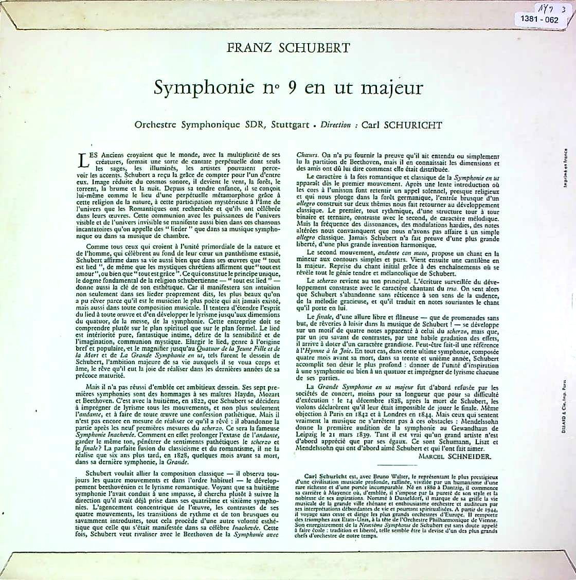 商品コード:1381-062[GUILDE du DISQUE] C.シューリヒト/ シューベルト:交響曲9番D.944「グレイト」