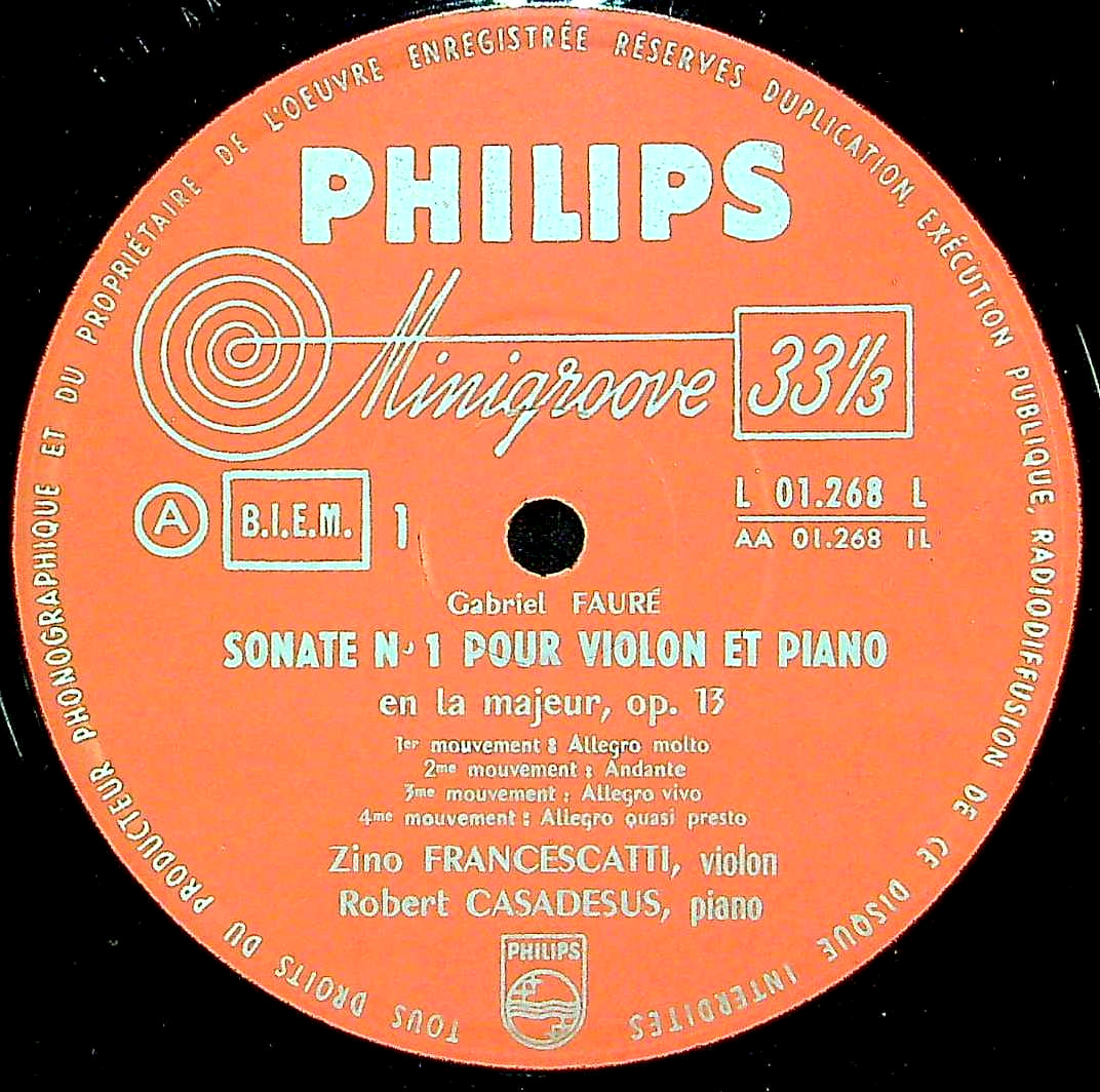 商品コード:1381-040[PHILIPS] Z.フランチェスカッティ(vn)/ フォーレ:Vnソナタ1番Op.13, 2番Op.108