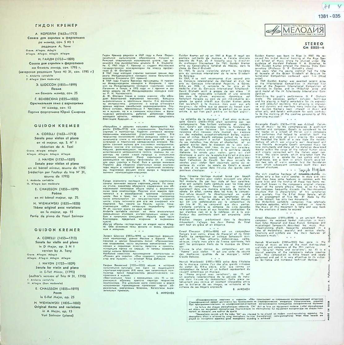 商品コード:1381-035p[MELODIYA] G.クレーメル(vn)/ Vnリサイタル/コレッリ, ハイドン, ショーソン, ヴィエニャフスキ