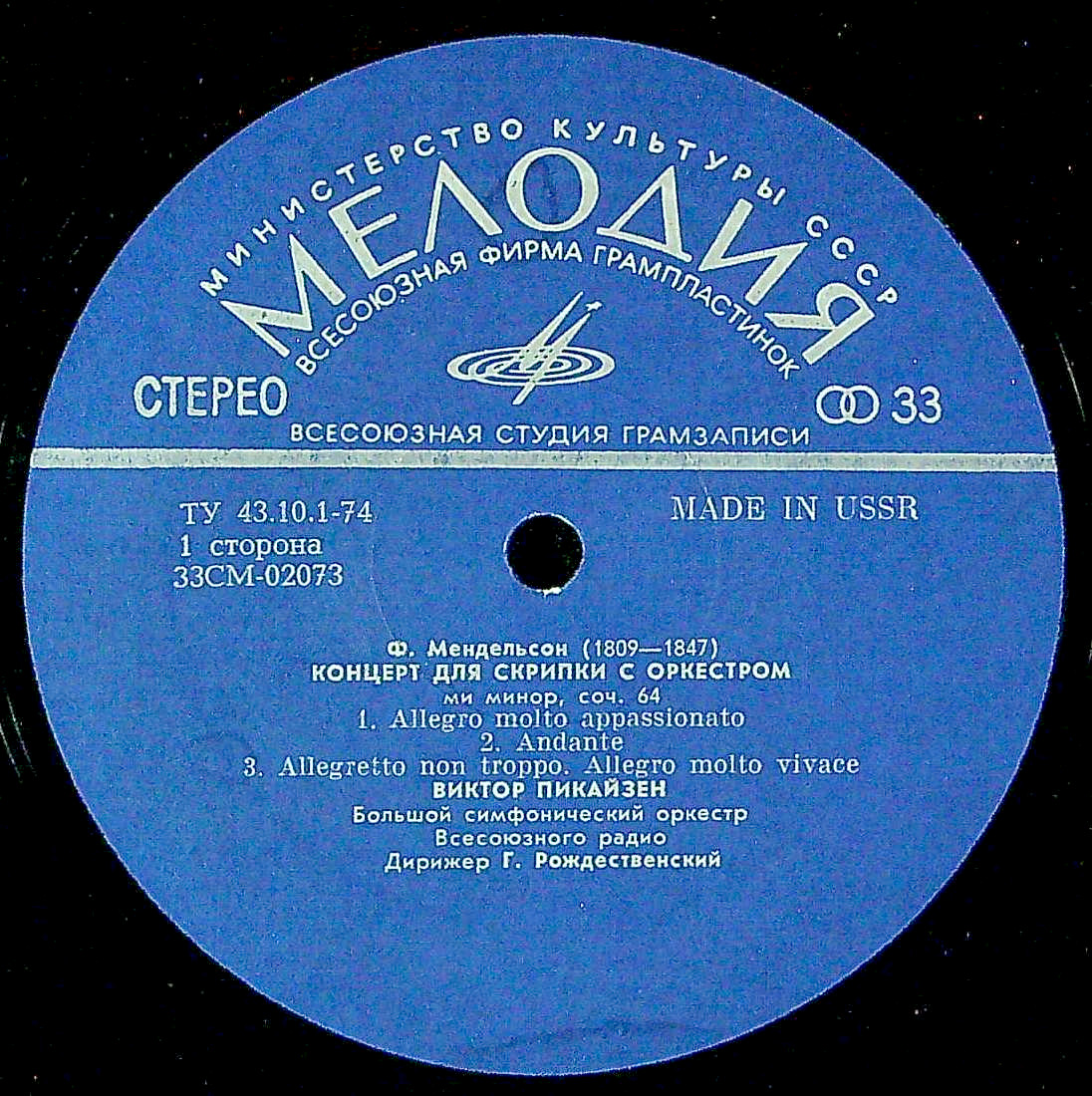商品コード:1381-034nb[MELODIYA] V.ピカイゼン(vn)/ メンデルスゾーン:Vn協奏曲Op.64, ヴィエニャフスキ:Vn協奏曲1番Op.14