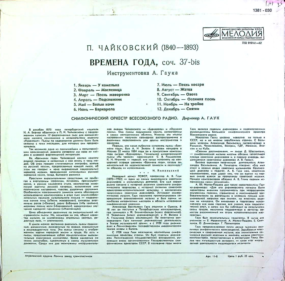 商品コード:1381-030t[MELODIYA] A.ガウク/ チャイコフスキー:四季(12の性格的描写)Op.37b(ガウク編・管弦楽版)