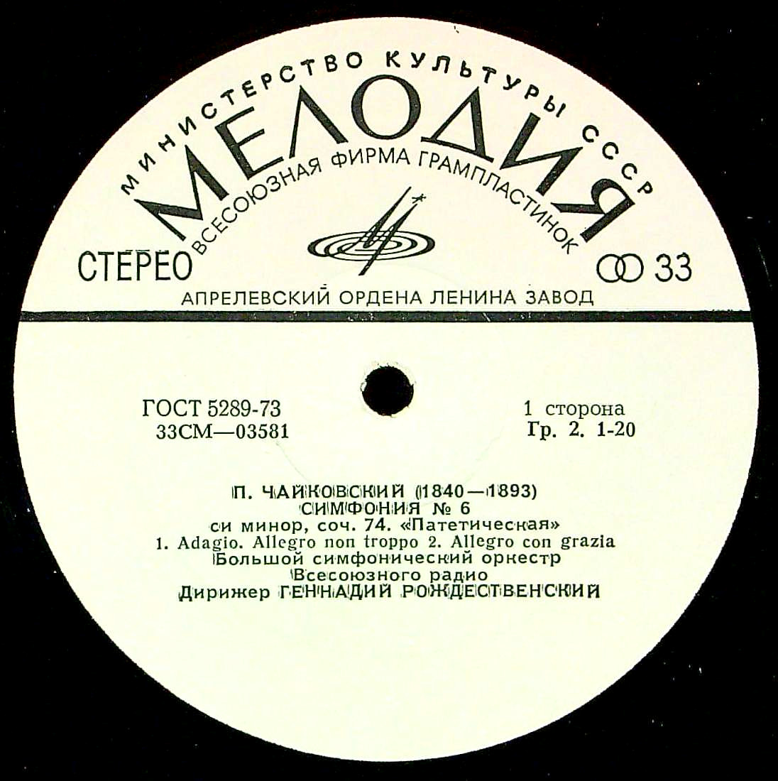 商品コード:1381-025t[MELODIYA] G.ロジェストヴェンスキー/ チャイコフスキー:交響曲6番Op.74「悲愴」