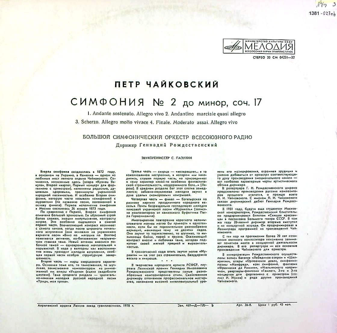 商品コード:1381-023nb[MELODIYA] G.ロジェストヴェンスキー/ チャイコフスキー:交響曲2番Op.17