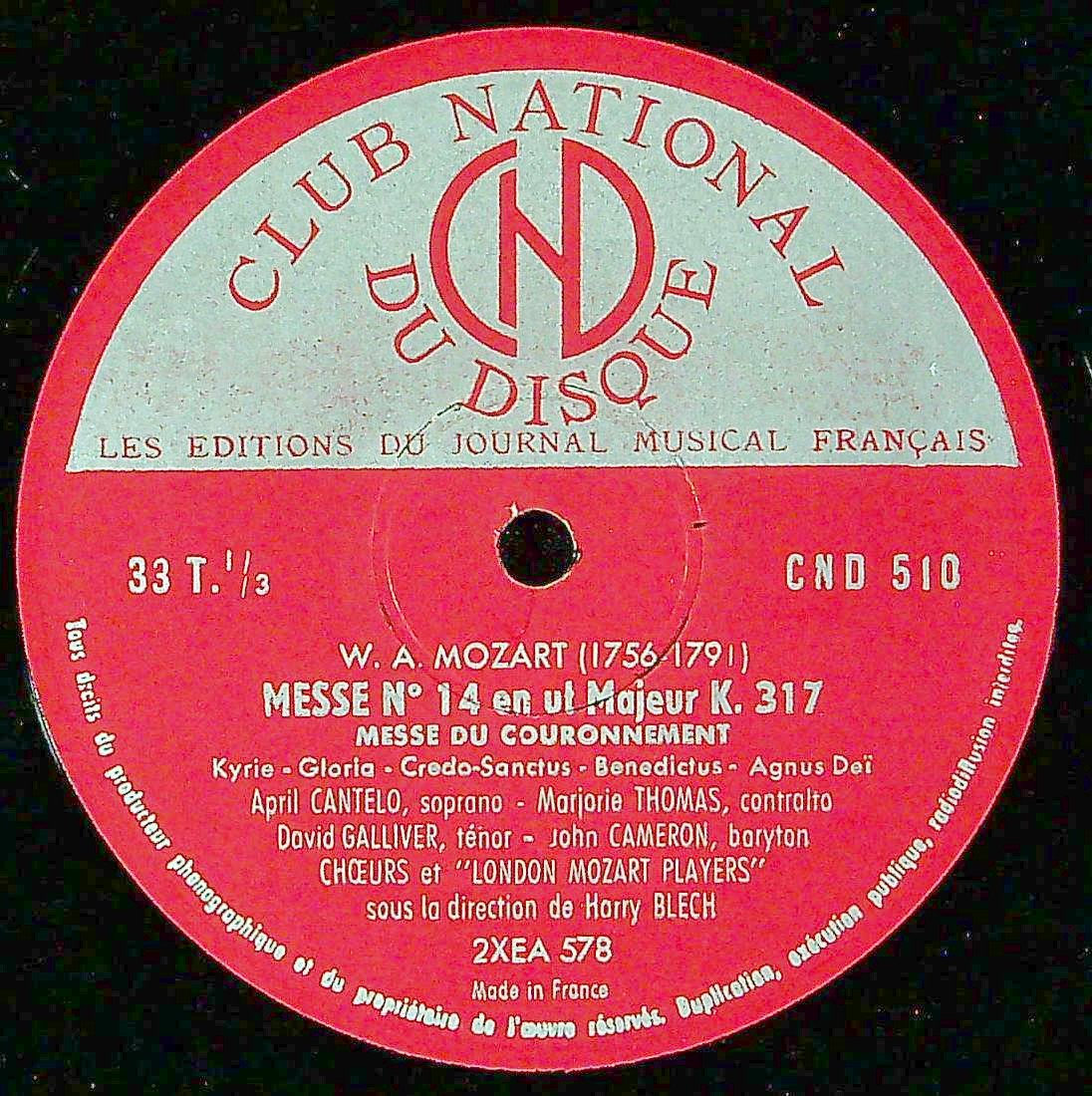 商品詳細:His Master's Voice:CLP 1031で発売された比較的よく知られたモーツァルトの戴冠式ミサK.317の録音で英国での最初の録音と思われる。オケと合唱はハリー・ブレックが創設したロンドン・モーツァルト・プレイヤーズとその合唱団。モノラル期の名演の一つである。英国録音とは言えしっかりラテン語で歌われる。K.317の陰に隠れたハイドンの「サルヴェ・レジーナ」に注目する方は多くないだろう。これはK.317のおまけとしては重要過ぎる1曲である。「サルヴェ・レジーナ」は聖歌の一つである。厳密には「アンティフォナ(交唱)」という聖母マリアへの祈りの一つ。ハイドンの「サルヴェ・レジーナ」は5曲あり、これはその中の2番目のト短調 でHob.XXIIIb:2が付く。ハイドンのミサ曲は14曲ありHob. XXIIが付くが、「サルヴェ・レジーナ」はミサ曲とは異なるジャンルである。「小規模な宗教音楽群」に使われるHob.XXIIIbが使われる。録音の少ないマイナーな宗教音楽だが「サルヴェ・レジーナ」ト短調はB面全て使う長い曲で初めて聴いても心打たれる美しい曲である。前奏曲は指揮者により異なるが、じきにに始まる合唱は男女混声で静かながら「戴冠式ミサ」に負けない魅力を持つ曲である。あるいはこちらが主役かもしれない。ジャケットには「サルヴェ・レジーナ」3番の表記があるが、現在では使用されない番号である。「戴冠式ミサ」の名演は多いが、「サルヴェ・レジーナ」ト短調の録音は少なく、当H.ブレック盤こそが今もって名演と湛えられるLPである。ドラマティックな表現と緻密なアンサンブルで高く評価されている。1980年代にニコラウス・アーノンクール指揮 コンツェントゥス・ムジクス・ウィーンも録音したが古楽スタイルで全くの別物。ブレック盤は定番のK.317と決定盤の「サルヴェ・レジーナ」の両方が楽しめる超お得盤!フランス盤は特に希少!