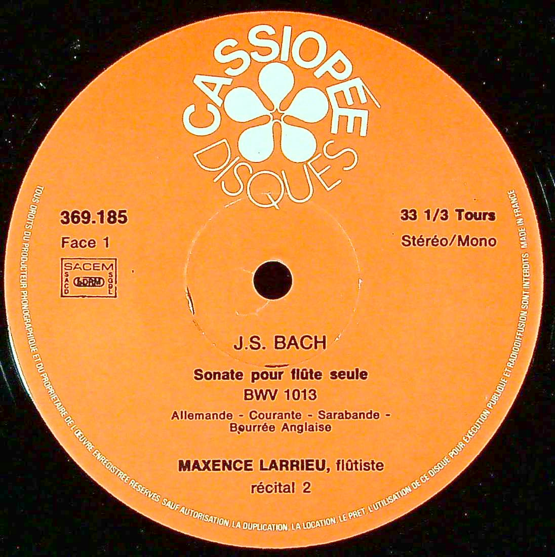 商品コード:1381-010[CASSIOPÉE] M.ラリュー(fl) / 無伴奏Fl曲集/バッハ:BWV.1013, C.P.E.バッハ:イ短調, ドビュッシー, オネゲル