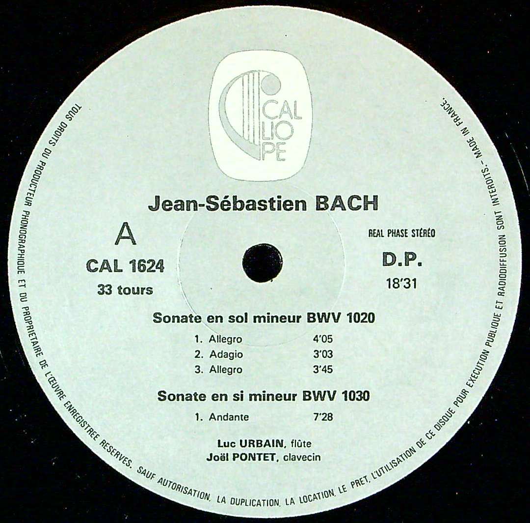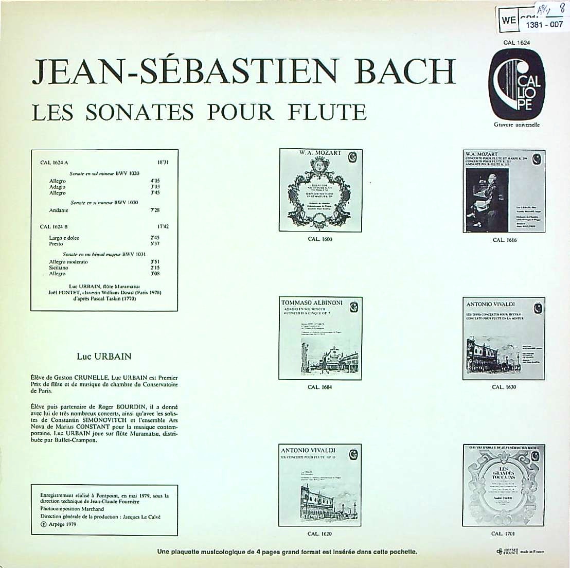 商品コード:1381-007[CALLIOPE] L.ユルバン(fl)/ バッハ:Flソナタ全集vol.1/Flソナタ第1番BWV.1030, 第2番BWV.1031, ト短調(7番)BWV.1020