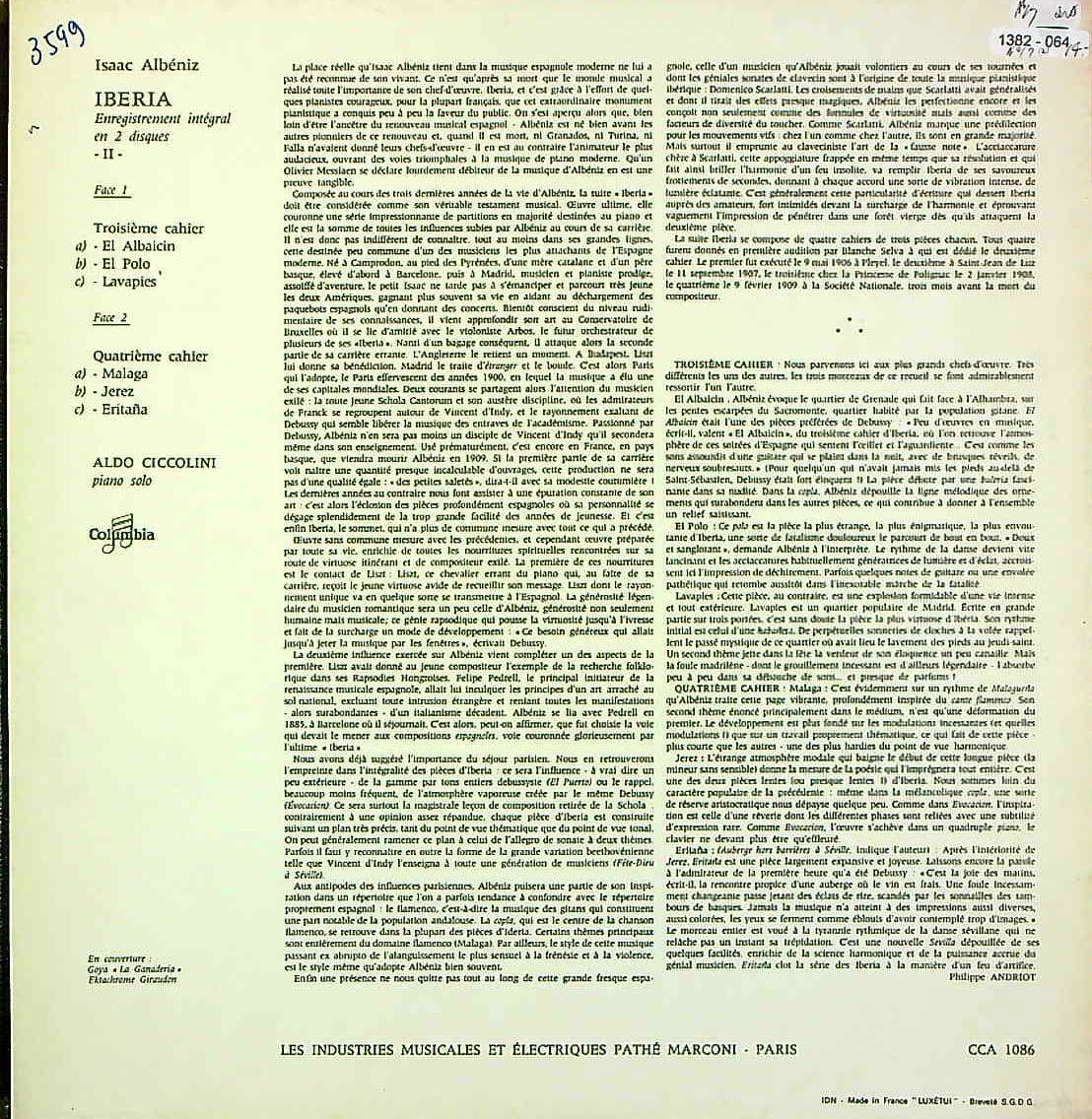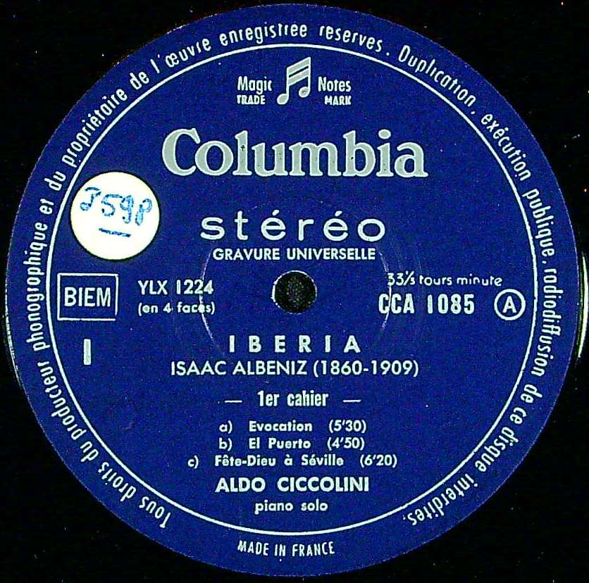 商品コード:1382-064[COLUMBIA] A.チッコリーニ(pf) / アルベニス:ピアノ組曲「イベリア」(全4巻)