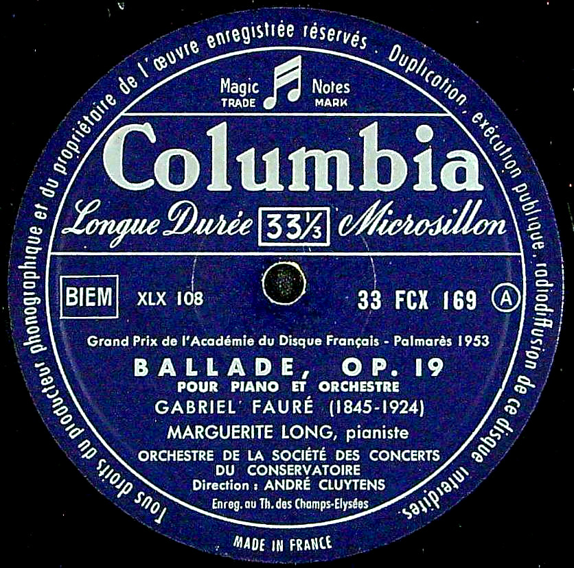 商品コード:1382-063[COLUMBIA] M.ロン(pf)/ フォーレ:Pfと管弦楽のためのバラードOp.19, ラヴェル:Pf協奏曲