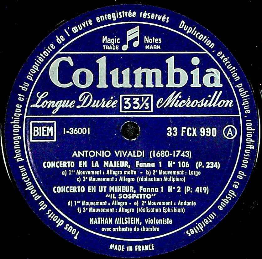 商品コード:1382-058[COLUMBIA] N.ミルシテイン(vn)室内o./ ヴィヴァルディ:Vn協奏曲集Vol.1(4曲)