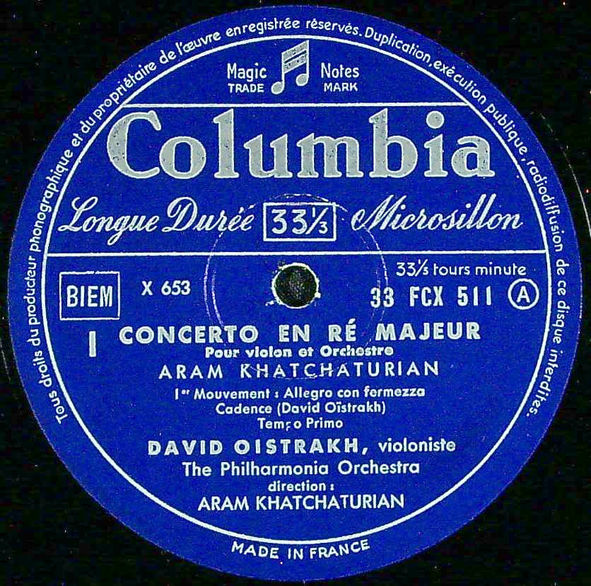 商品コード:1382-057b[COLUMBIA] D.オイストラフ(vn)/ ハチャトゥリアン:Vn協奏曲 ニ短調