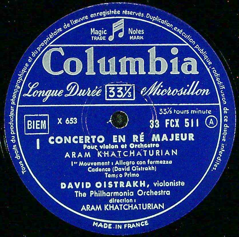 商品コード:1382-057[COLUMBIA] D.オイストラフ(vn)/ ハチャトゥリアン:Vn協奏曲 ニ短調