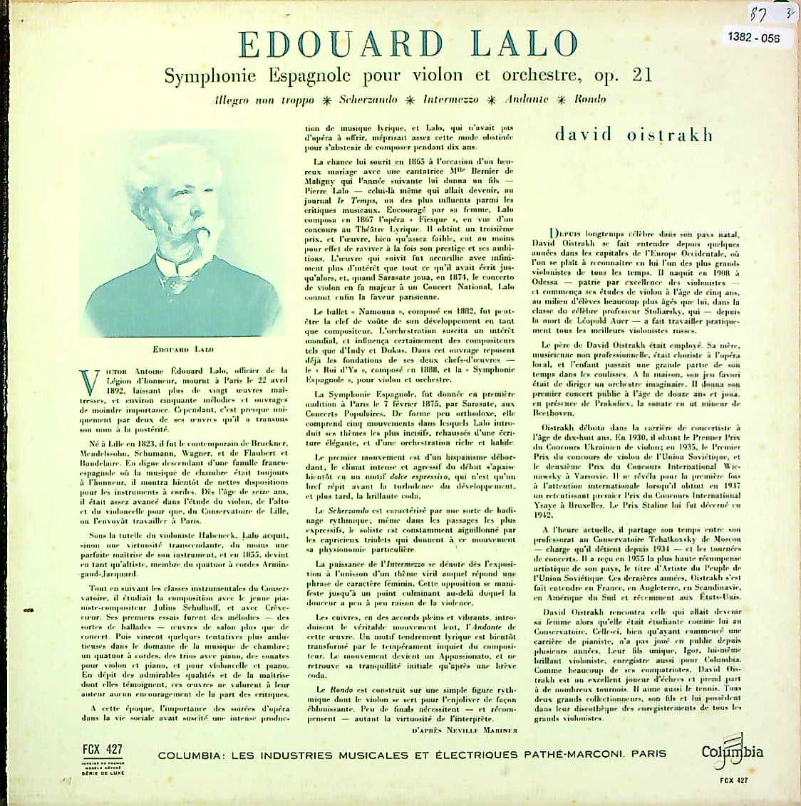 商品コード:1382-056[COLUMBIA] D.オイストラフ(vn)/ ラロ:スペイン交響曲Op.21