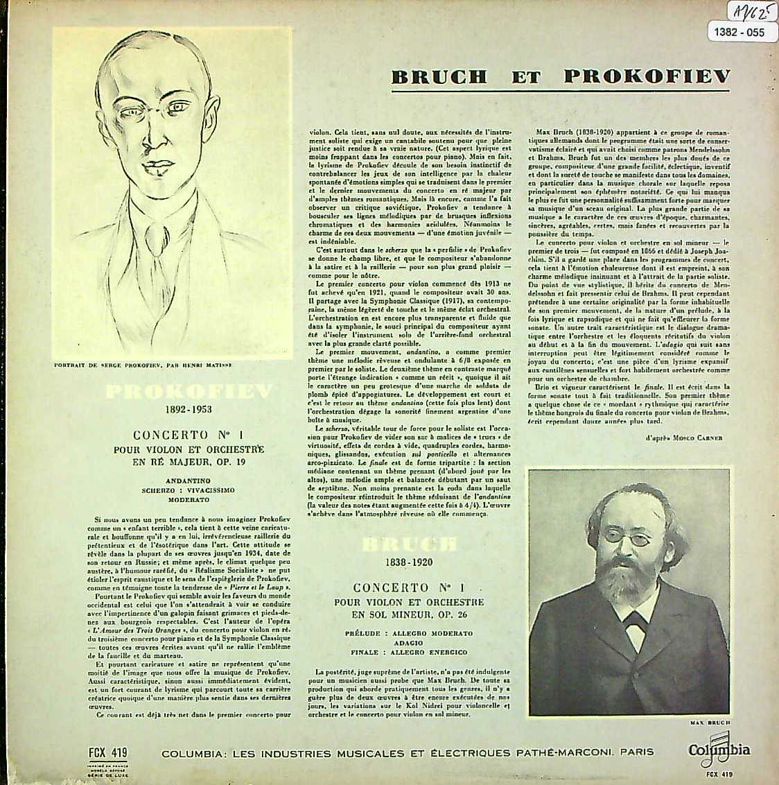 商品コード:1382-055[COLUMBIA] D.オイストラフ(vn)/ ブルッフ:Vn協奏曲1番Op.26, プロコフィエフ:Vn協奏曲1番Op.19