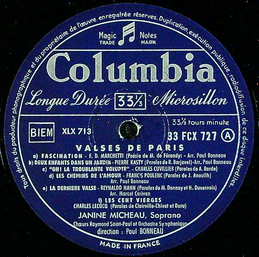 商品コード:1382-052[COLUMBIA] J.ミショー(s)/ ワルツ歌曲集/マルテッティ, カスティ, キュヴィリエ, プーランク, アーン, ルコック 他